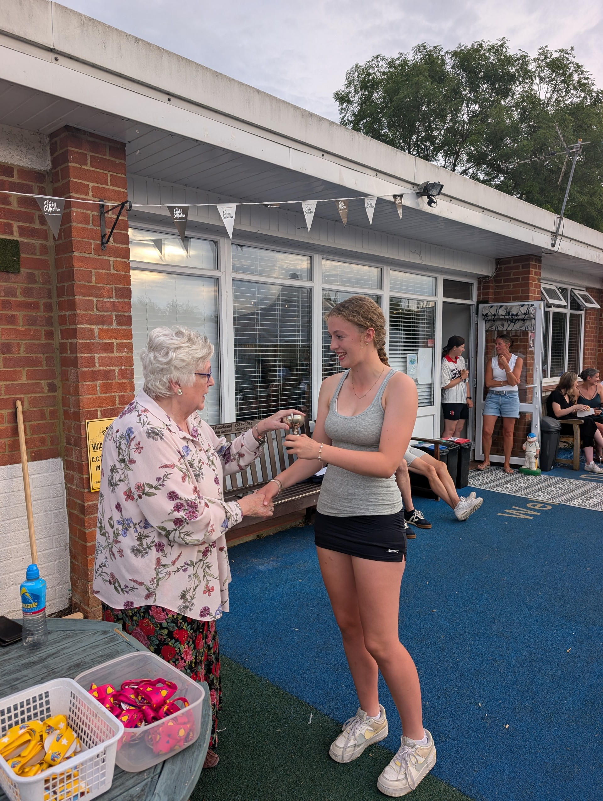 18th July 2025 - Dinton Cricket Club Presentation At the Annual Awards Evening at the Dinton Cricket Club Chloe Lambert presented the cup to the Most Improved Colt to Olivia Skinner. More prizes were also presented to talented players.