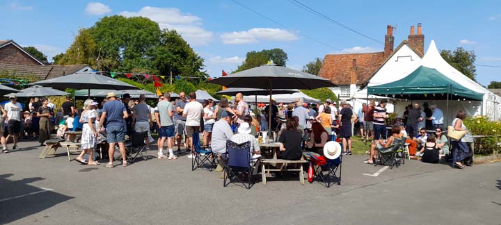 20th August 2022 - Dinton Beer Festival at Seven Stars The Dinton Beer Festival, held in the grounds of The Seven Stars in Dinton, was very well attended. Walkers came from Haddenham, Upton, Ford, Gibraltar and Westlington, and cyclists and bus travellers came from further afield.