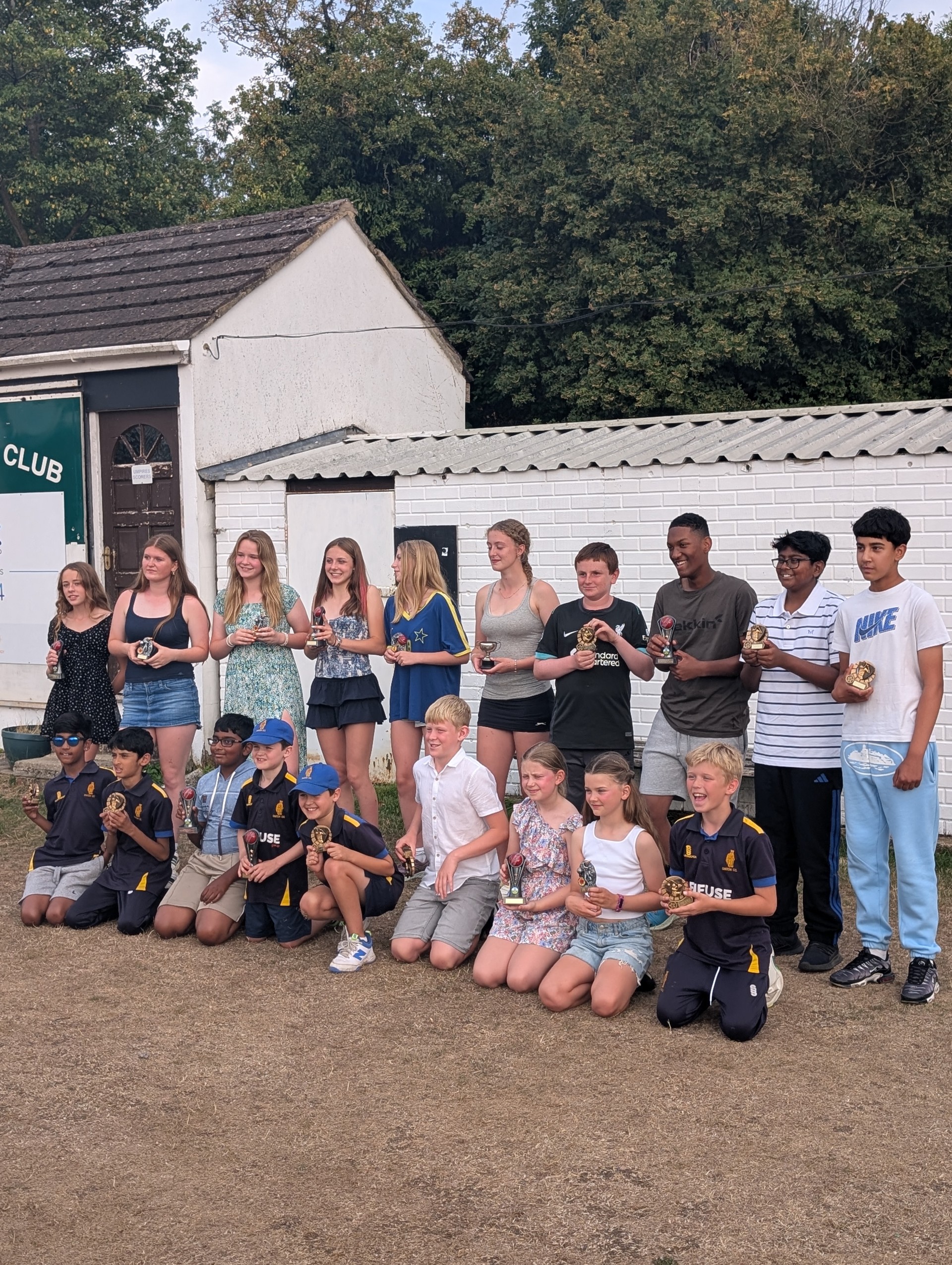 19th July 2024 - Dinton Cricket Club Cup Awards Evening Friday 19th July the Awards Evening was held at Dinton Cricket Club. Chloe Lambert presented her cup for the Most Improved Colt to brother and sister, Dylan and Freya McCrae, the first time to have two winners at the same time. In addition to the cup Freya received an Amazon voucher and Dylan received a Starveall Butchers voucher.
